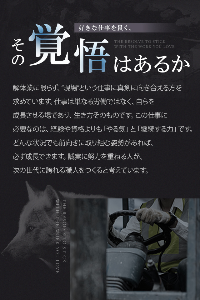 中途半端な覚悟ではなく、「この仕事で生きていく」という意思を持つ人を求めています。
